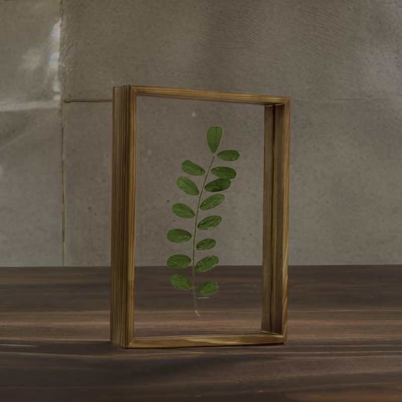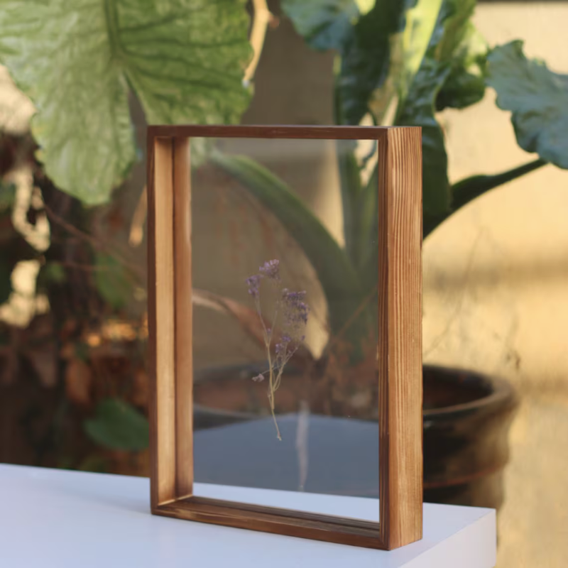 Entdecke den handgefertigten verdunkelten Kiefernholzrahmen – ein stilvoller, doppelseitiger Floating Frame für deine schönsten Erinnerungen. Perfekt für gepresste Blumen, Fotos, Zertifikate oder kreative Kunstwerke.